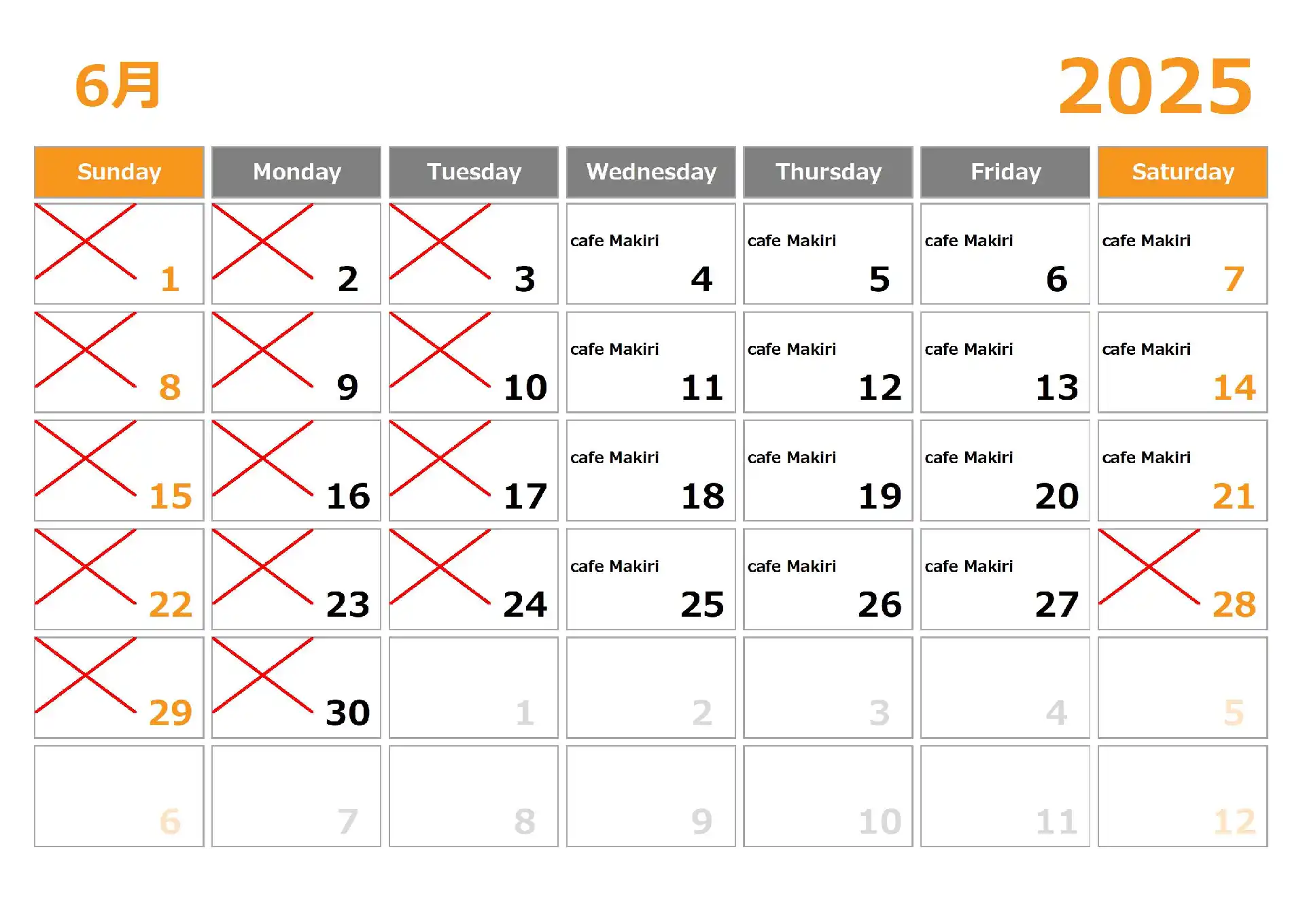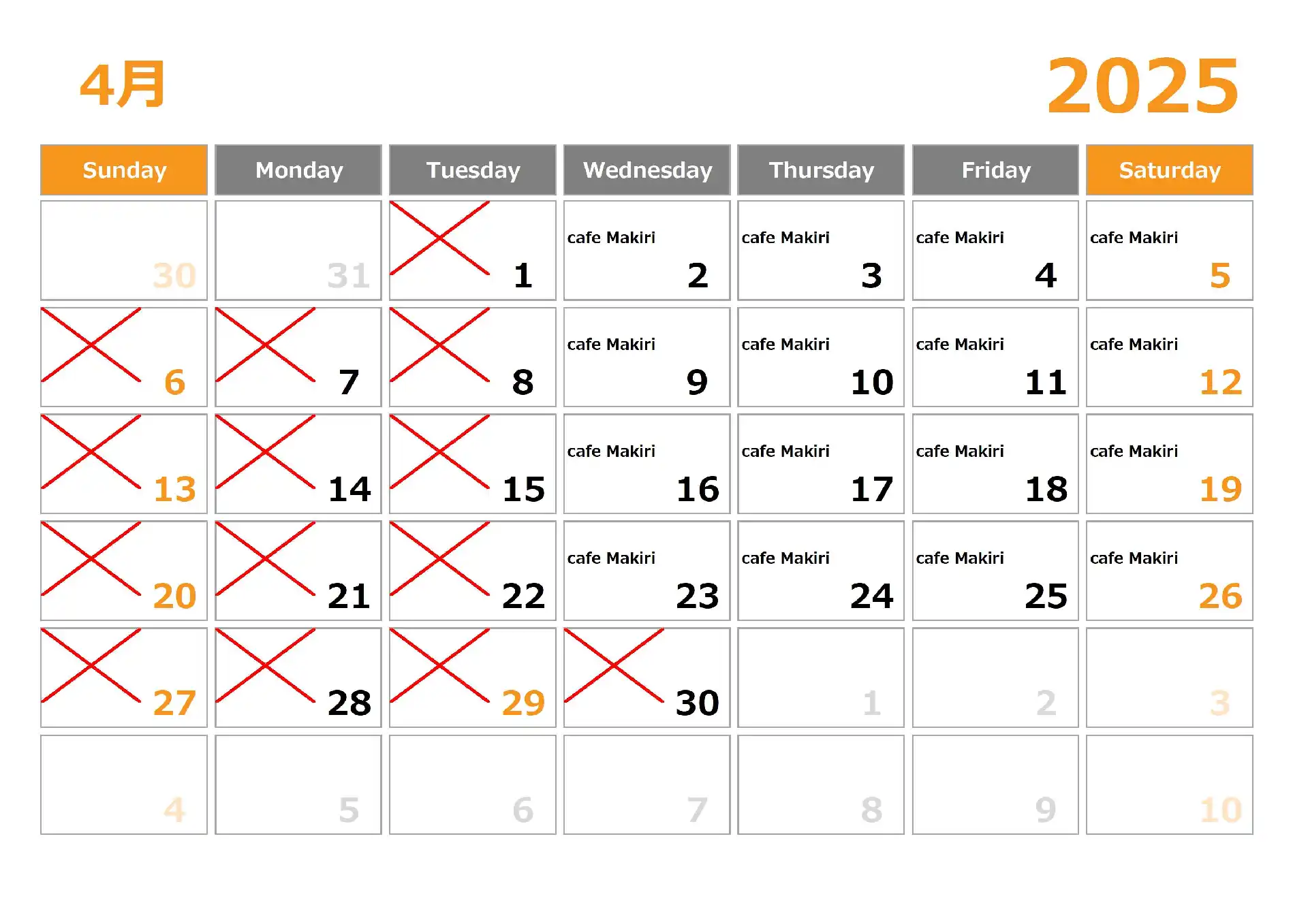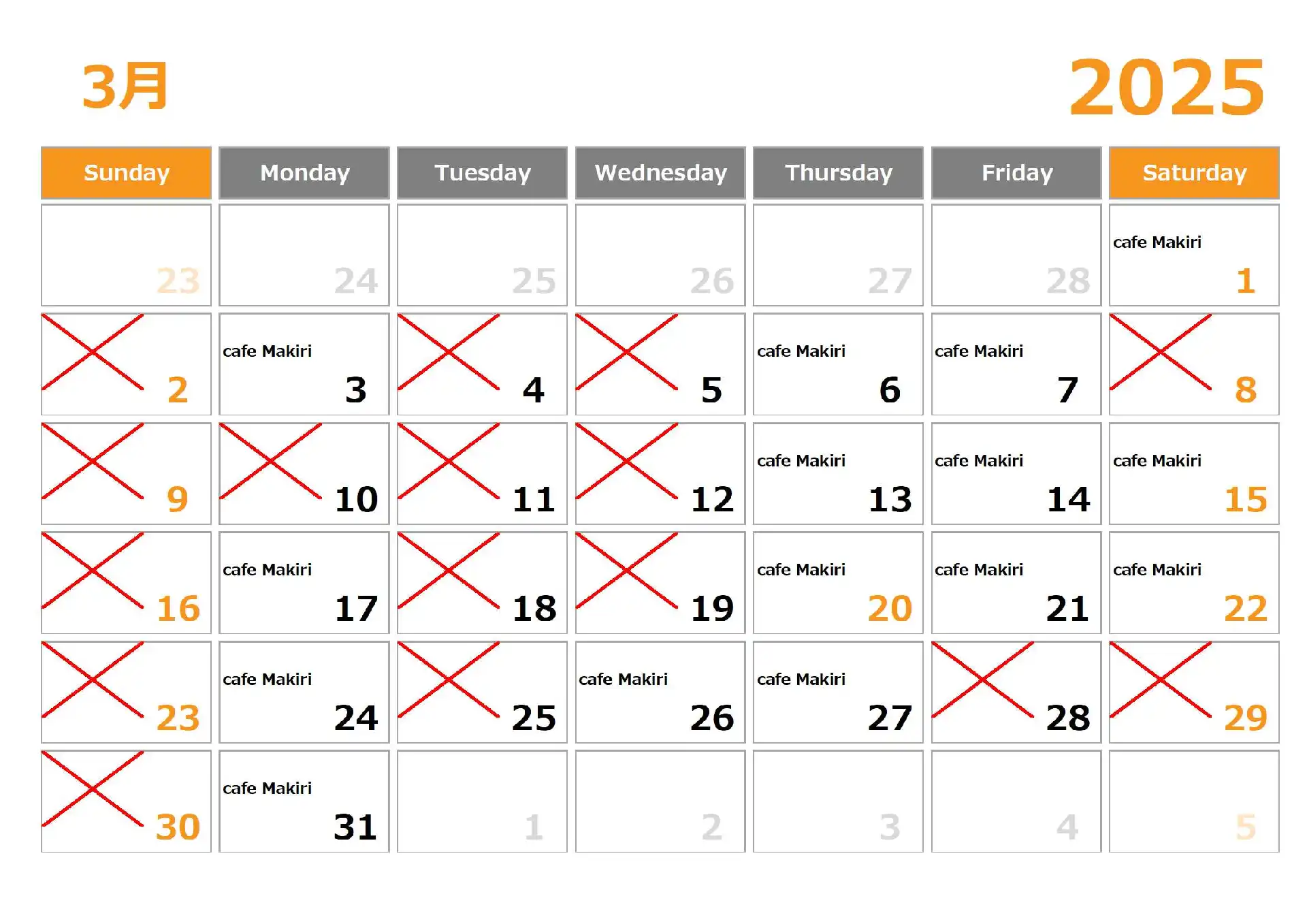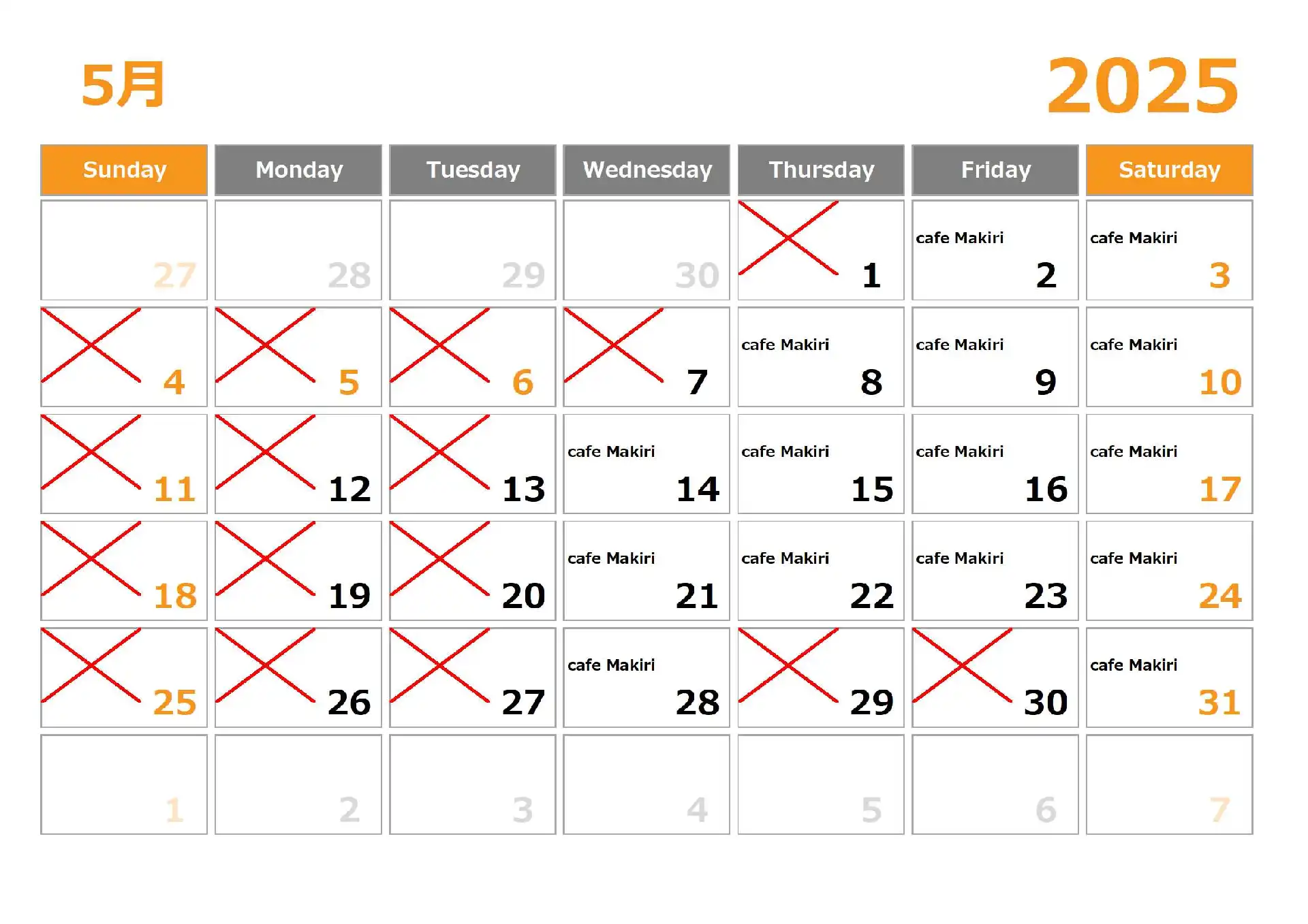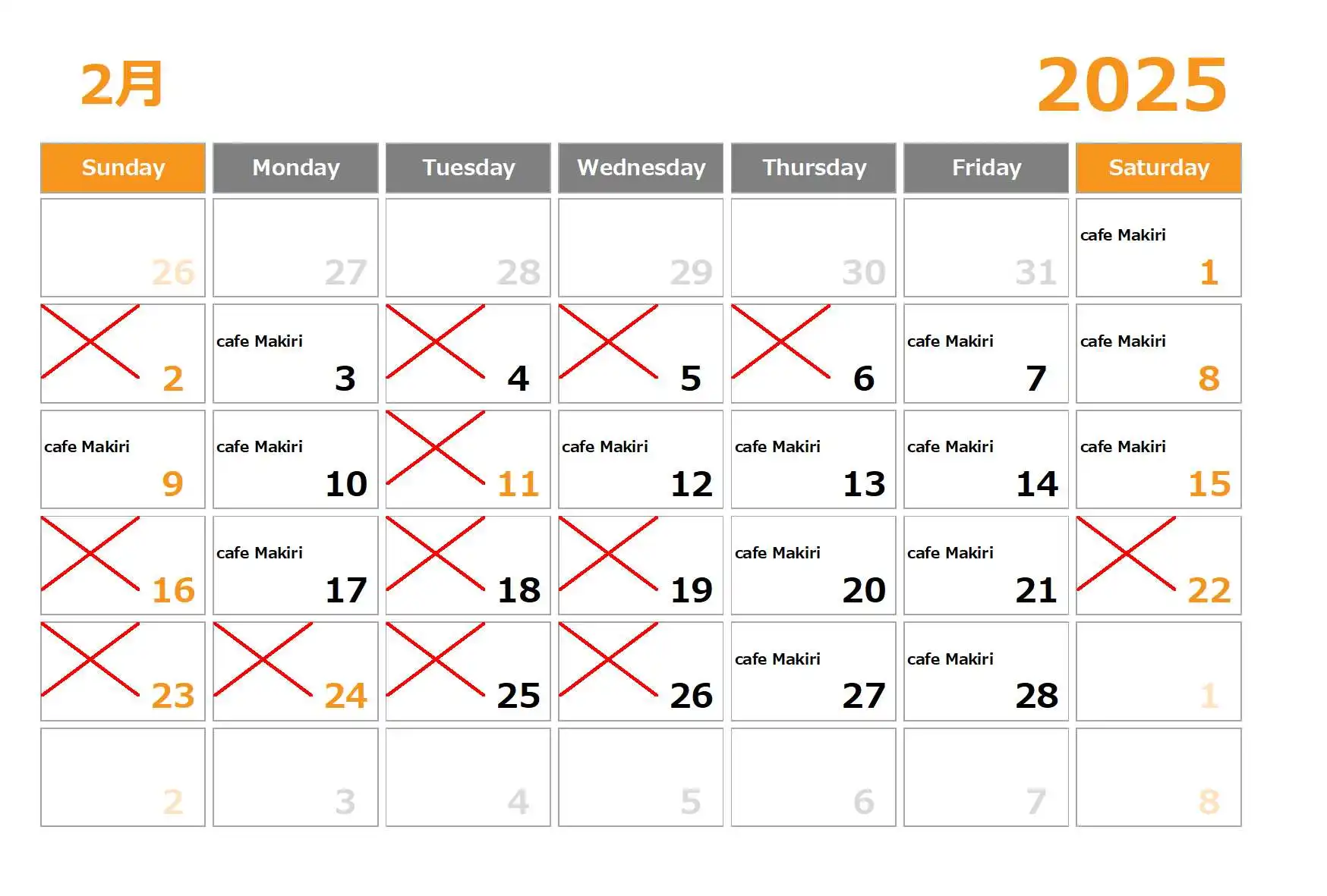 「城町文庫」は市内に3店舗ございまして、「毎日違うお店に変われたら面白い」をコンセプトに、様々なお店が小さなブースを構えたり、コミュニティの会合や、物販販売の出店を行っております。私たちは開智店をお借りしてこの度2025年2月1日より正式に<Cafe Makiri>としてオープンいたしました。このようなコンセプトの店舗ゆえ営業日・定休日が定まっておりません。月初めに城町文庫側と当店が調整をして出店日時を決めております。毎月の出店日時は月初めにこのホームページ及びFecebook ・Instagramにて発表させていただきます。それを見てご来店くださいますようお願い申し上げます。今後とも何卒よろしくお願い申し上げます。 店主敬白