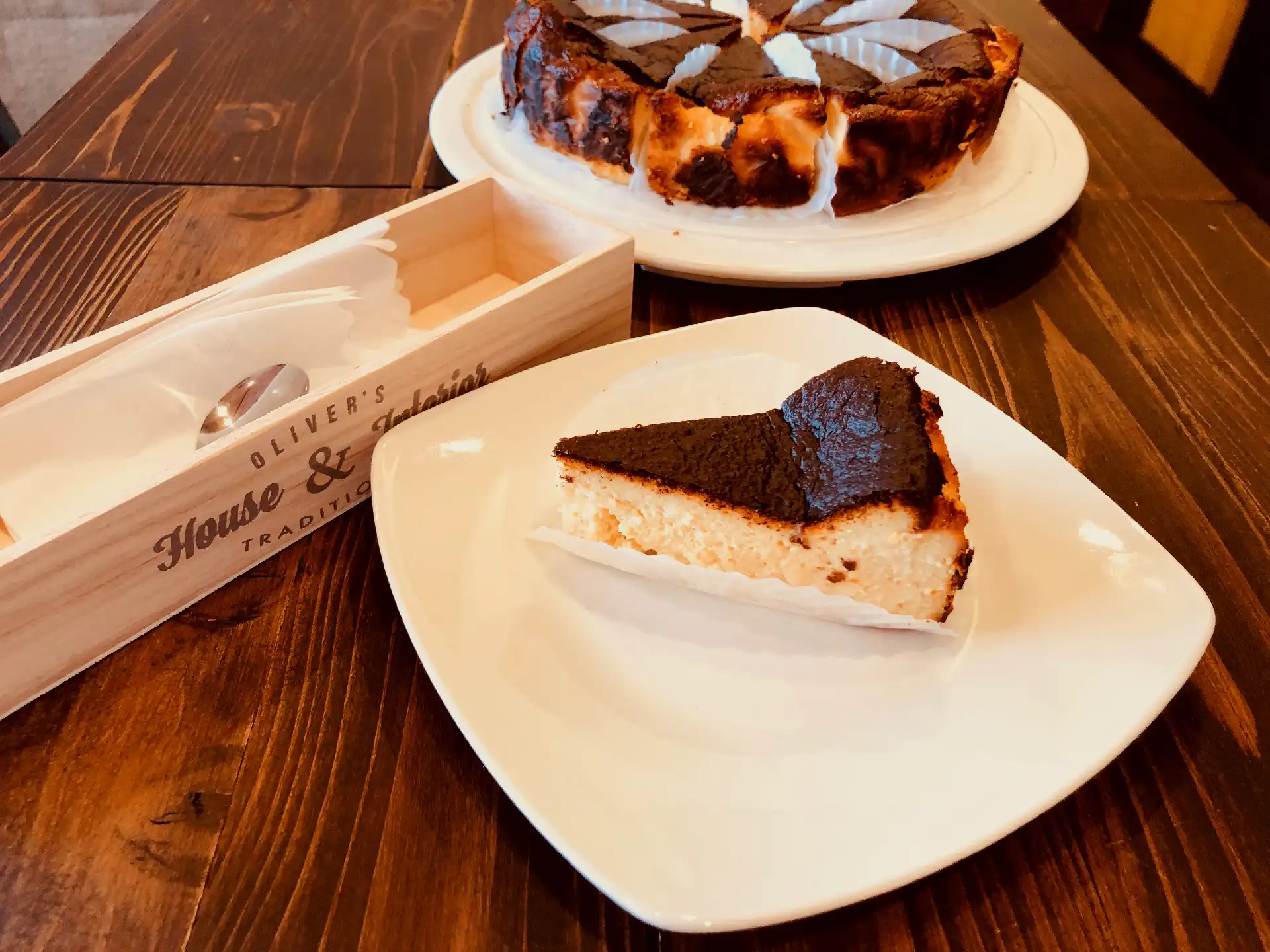 外は焼き目がしっかりつき、中はトロット濃厚なチーズケーキになっております。