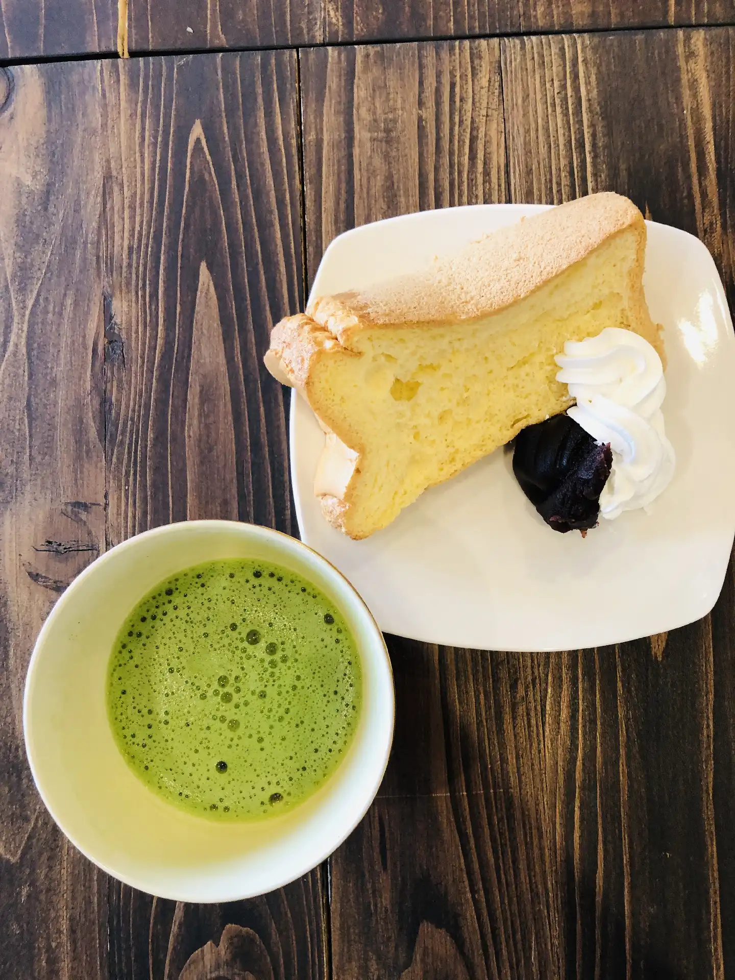 ニッポンセット:抹茶と大学芋(お芋の季節が終了すれば違う甘味になります)のセット